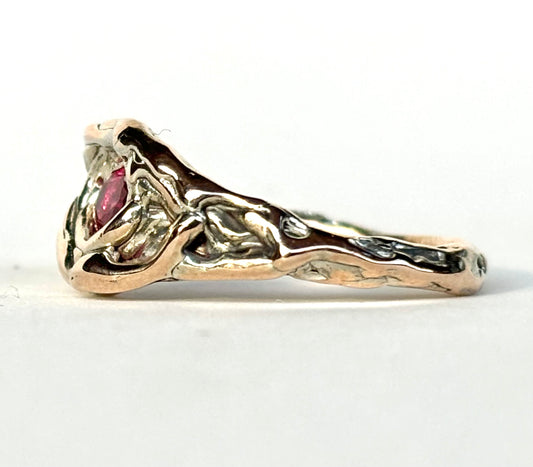 Cross roads pink tourmaline and 9ct rose gold chunky ring