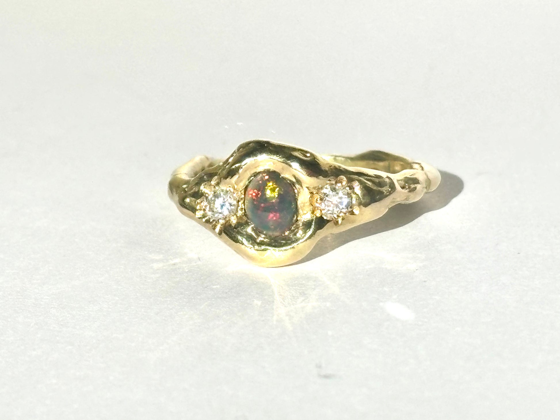 Not much to say, the pictures speak for themselves. This ring made in 18k gold with organic shapes and a colourful black opal is the first of hopefully many more gold rings to come.
