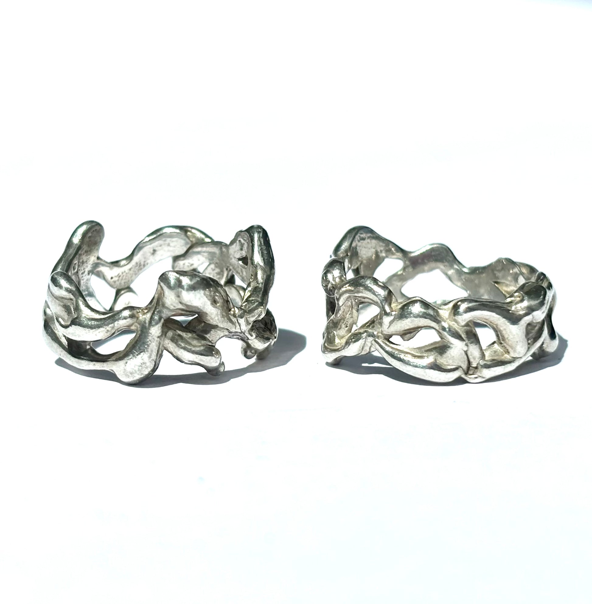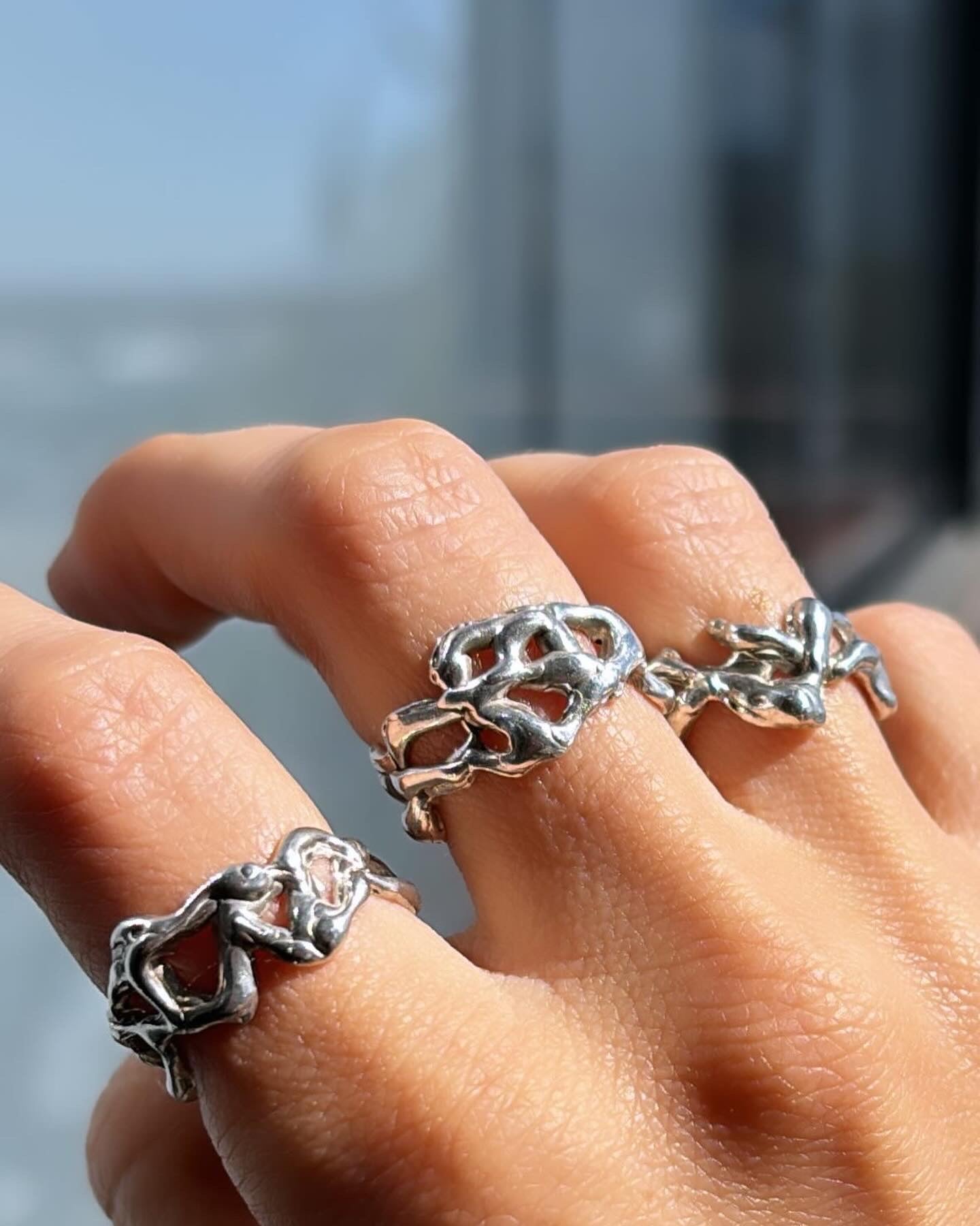 This original set of one of a kind rings imitating silver, melting in your hands.