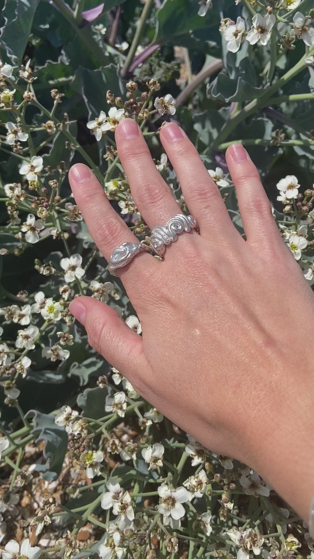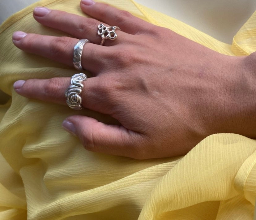 Elevate your style with our stunning silver ring with swirls. Handcrafted with love and attention to detail, this exquisite piece is a true work of art. Designed in wax and brought to life through the intricate lost wax process, the result is a ring that will turn heads wherever you go.