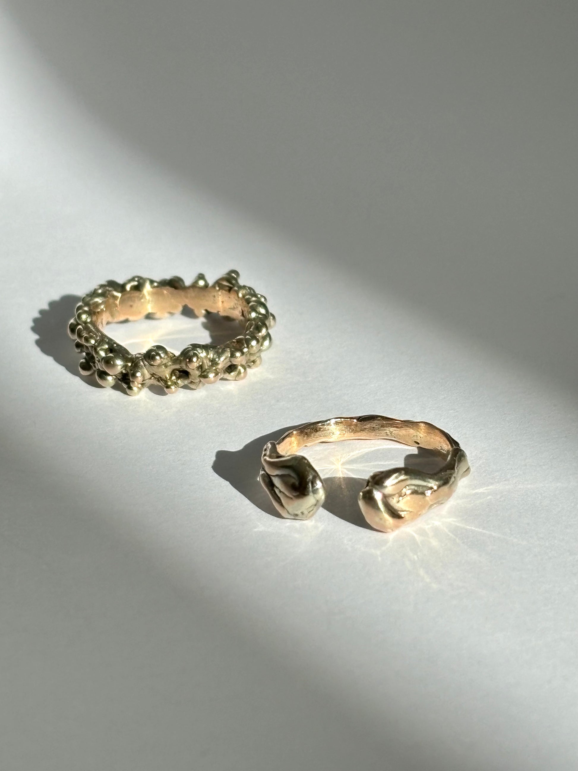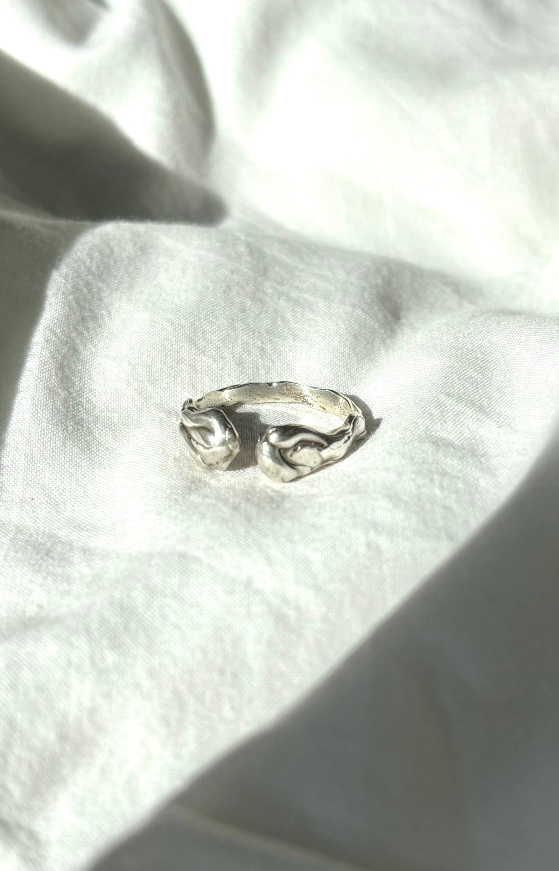 This elegant, organic-shaped ring is a testament to individuality and connection. Its slender band gently widens and rounds at the ends, forming a delicate gap that allows for easy adjustability and a perfect fit for any finger. Available in sterling silver, 9ct rose gold, or 18ct yellow gold, this design beautifully balances simplicity with meaning.